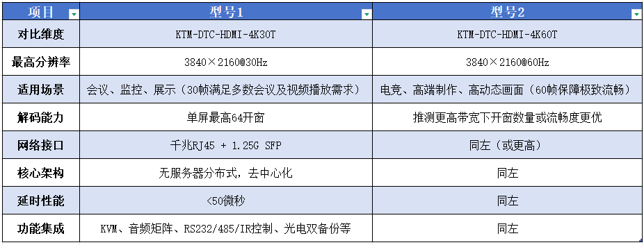 Kuntong坤通推出的两款编解码一体节点——4K30T与4K60T,在核心功能架构上相似,但在关键性能指标上存在差异。以下通过对比测评,帮助用户根据实际需求做出选择。