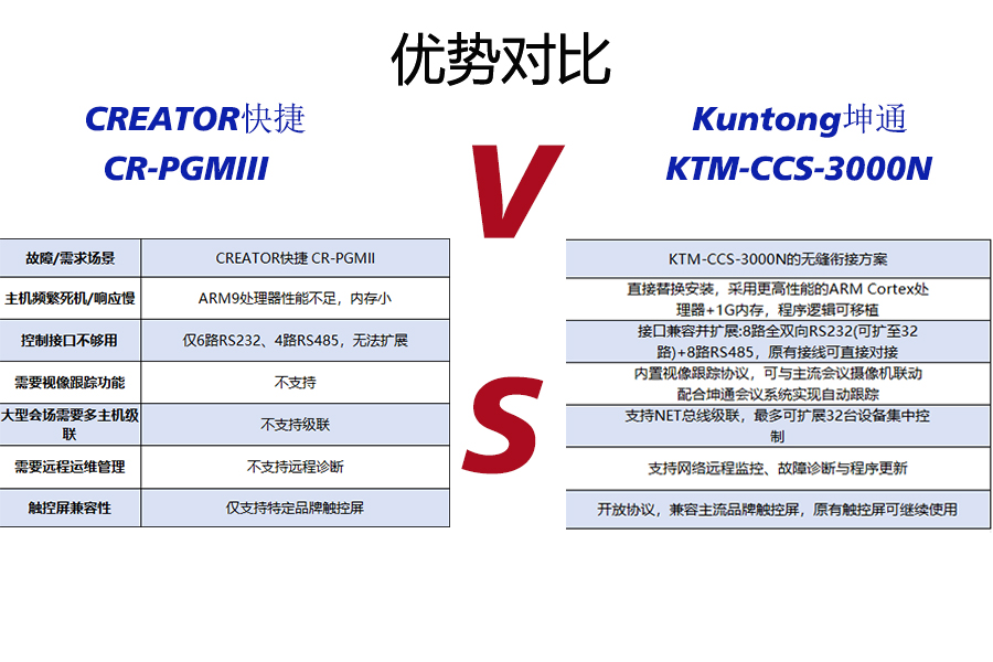 会议室中控主机突然失灵,绝对是系统管理员最头疼的时刻。当您正在使用的CREATOR快捷CR-PGMIII出现故障时,整个会议系统可能陷入瘫痪——投影仪关不了、幕布收不回、音响系统失控。别急,这恰恰是您系统升级的最佳时机!坤通KTM-CCS-3000N集中控制系统主机不仅能完美替代故障设备,更能为您的会议室带来全方位的智能升级。