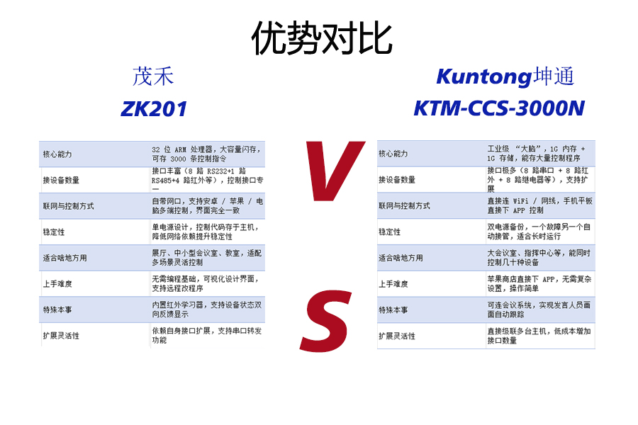 系统定位维度:ZK201的目标是“完成预设功能列表”。Kuntong坤通KTM-CCS-3000N的目标是成为开放、智能的“空间控制大脑”,它可以轻松集成专业音频处理器、视频矩阵、环境传感器,并能通过标准协议与楼宇、安防等系统对话。