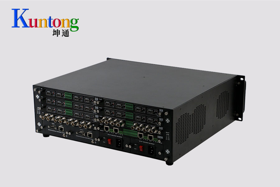 Kuntong坤通 KTM-MIX-1616 就像一个“接口万能匣”。它采用模块化插卡设计,能根据项目需求自由混搭HDMI、VGA、DVI、SDI、光纤等多种输入输出卡。无论会议室里是老旧电脑、现代视频会议终端还是专业摄像机,它都能兼容并包,实现信号的无缝接入与调度。它的核心优势在于极致的灵活性和广泛的适应性,是构建复杂、混合信号环境(如多功能厅、指挥调度中心)的理想基石。
