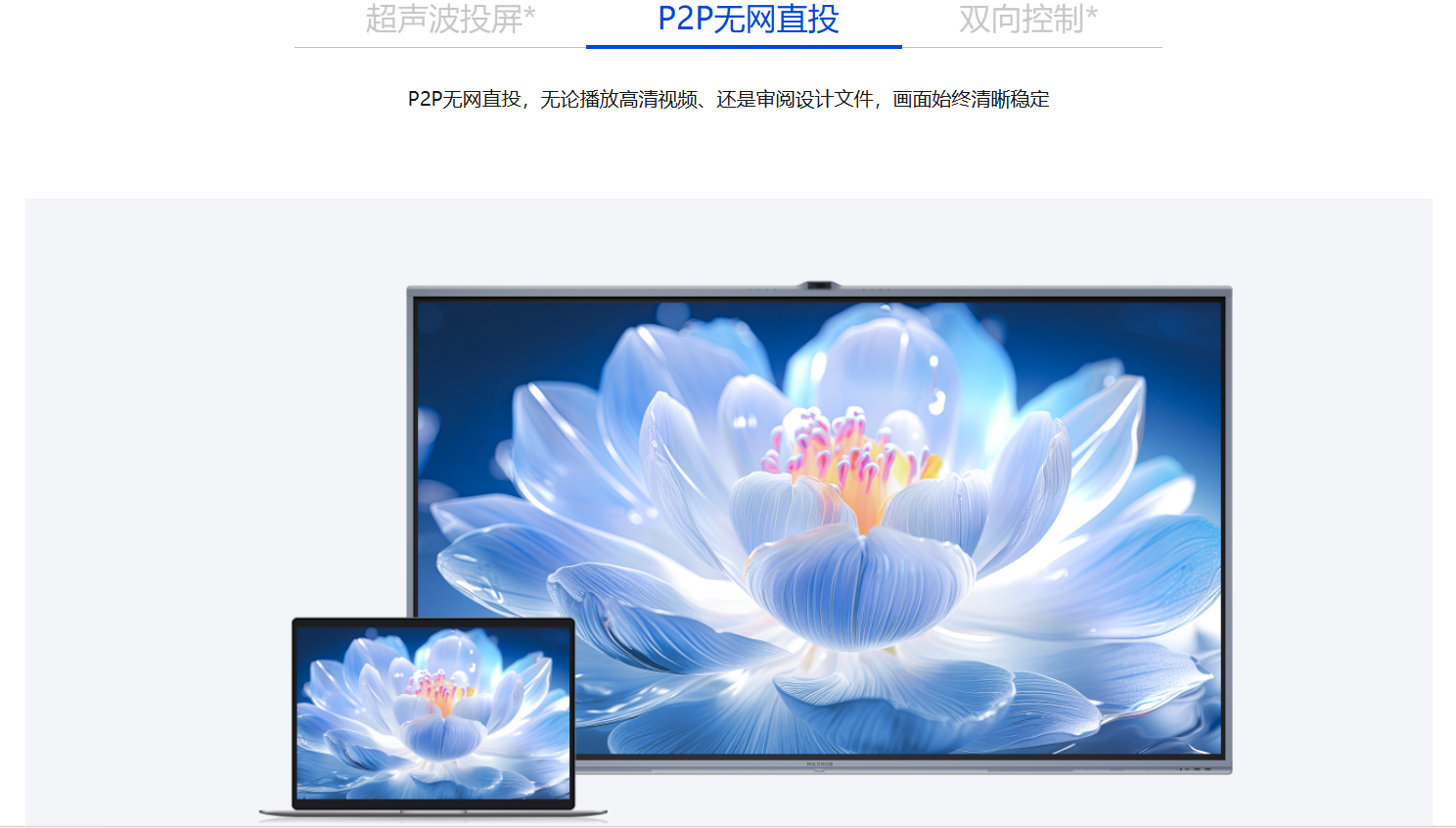 *P2P无网直投:在使用MAXHUB 传屏助手,在电脑未连接到同一无线网络情况下,可通过P2P技术连接投屏,目前仅支持Windows10 及以上的电脑。