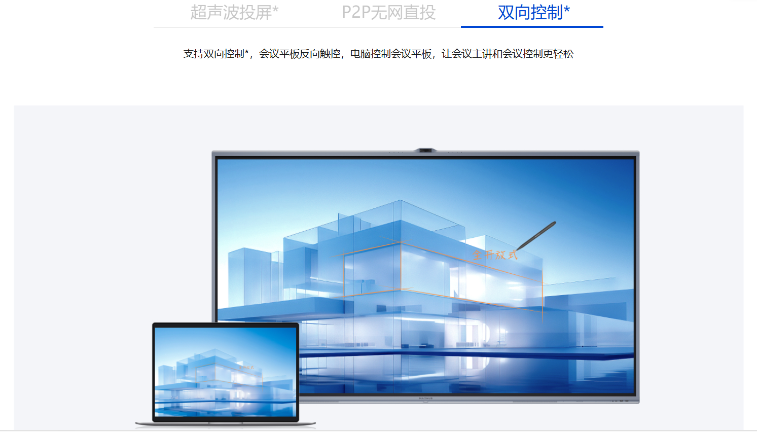 *双向控制:需安装MAXHUB Link传屏应用,支持Windows 7、macOS10.10 及以上。