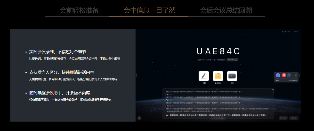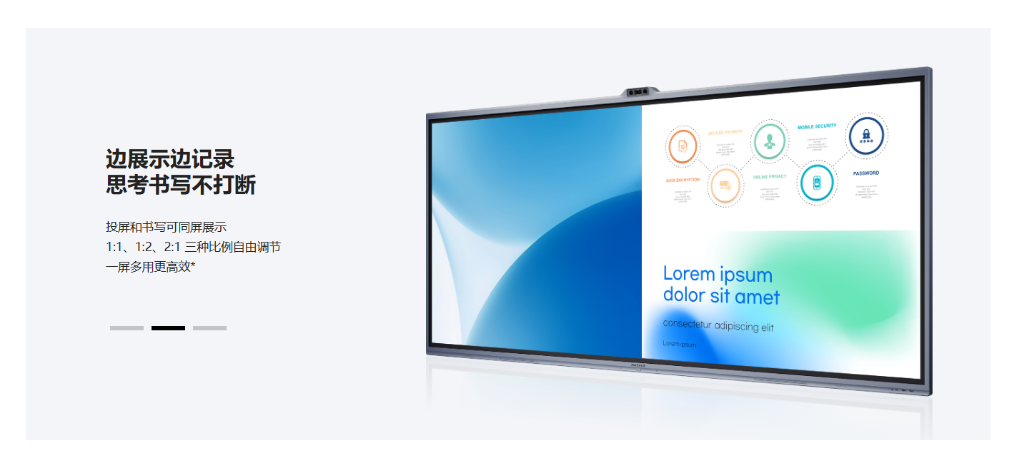 *一屏多用更高效:相比投屏和书写不能同屏显示的情况。*支持POE级联全向麦:支持MAXHUB 全向麦BM51,更多支持型号以后续实际情况为准*15 米清晰拾音:MAXHUB 实验室测试数据。*支持多种图形工具:指会议平板自带表格、图形、思维导图等工具