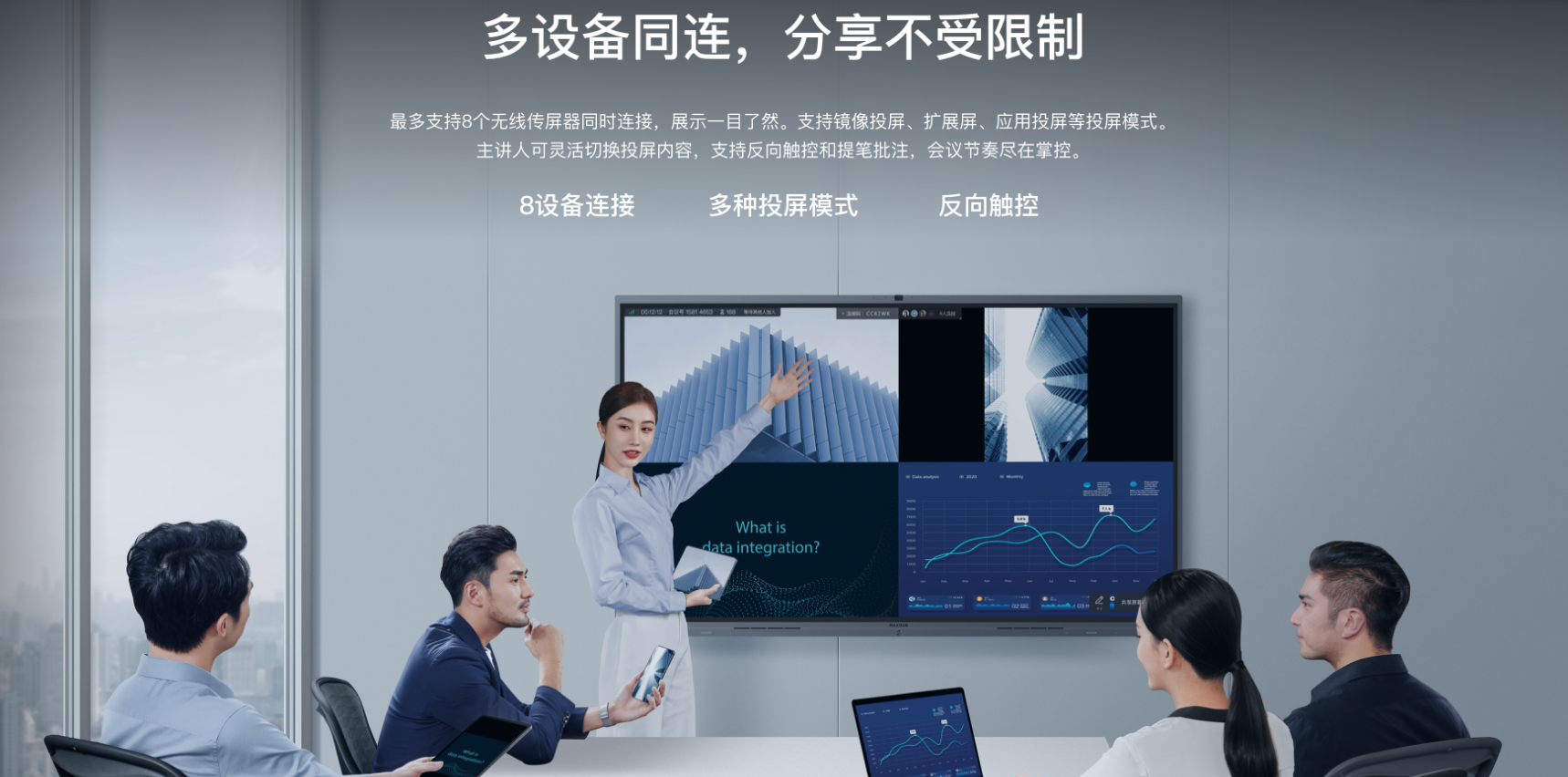 *一拍即投:传屏设备需支持Type-C DP视频输出,传屏器首次使用需与会议平板配对。