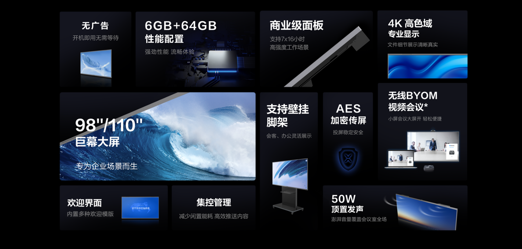 *可将电脑、手机或平板画面及声音安全投至大屏:电脑、手机、平板可一键投屏指 PC 端支持 Windows 7、macOS 10.10 及以上,手机、平板传屏支持 Android 5.0、 iOS 9.0 及以上操作系统。电脑可通过连接 MAXHUB无线传屏器投屏,且第一次使用,无线传屏器需与MAXHUB智会屏配对;电脑、手机、平板可通过下载 MAXHUB传屏助手 App实现投屏。