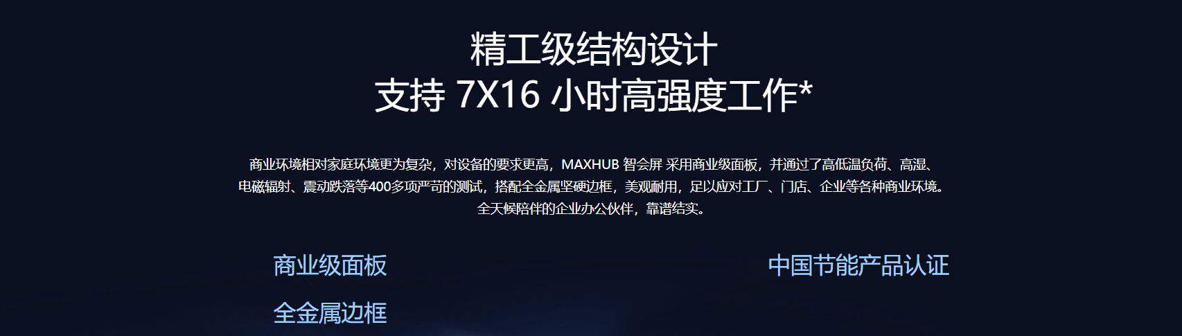 *支持7x16小时高强度工作场景:时长由MAXHUB实验室测量得出。